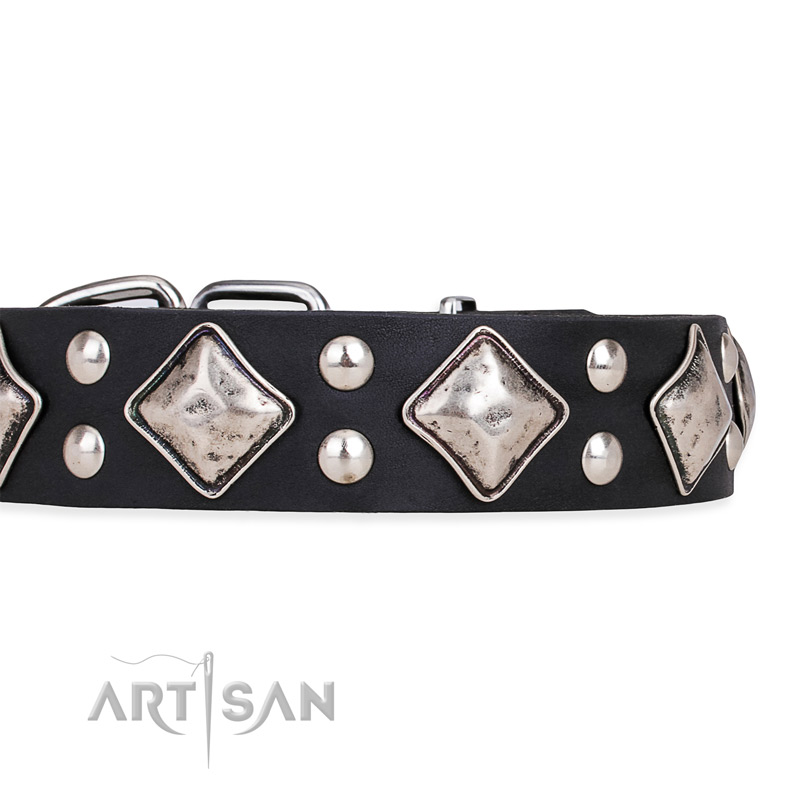 Do you enjoy fashion style? Allow your adorable German-Shepherd enjoy wearing such collars on! Provide him with this trendy leather dog collar with decorations from FDT Artisan. This accessory is created for those who just adore stylish accessories. In this exquisite collar, your dog will have more strict, but handsome look. Your lovable four-legged friend will get the finest treatment when wearing this gear. Full grain leather is soft and totally eco-friendly.
