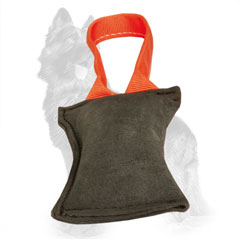 If your dog has already an experience in bite training and shows good results, you can try this Leather Bite Tug for drive and retrieve exercises with your German-Shepherd. This model is intended for puppies and young pets, but not as first training tool. For starting stage in bite training it is better to choose jute tugs or French linen, because the leather is not so easy to bite due to its structure, it needs much strength and bite skills. This particular item will be helpful for further exercises to make dog's grip stronger and to perform advanced retrieve exercises.