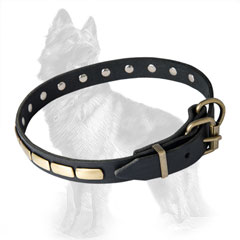 German-Shepherd Leather Dog Collar with Slim Brass Plates